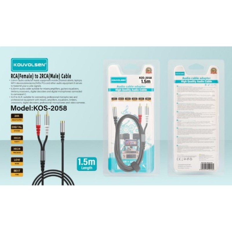 ΚΑΛΩΔΙΟ ΗΧΟΥ RCA(ΘΗΛ.) ΣΕ 2 RCA(ΑΡΘ.) 1.5Μ 1444-02