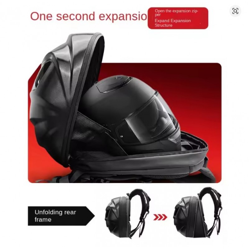 • Διαθέτει εσωτερικό χώρο για κράνος ή προσωπικά αντικείμενα, ρυθμιζόμενους ιμάντες, και είναι κατασκευασμένο από αδιάβροχα υλικά υψηλής αντοχής.