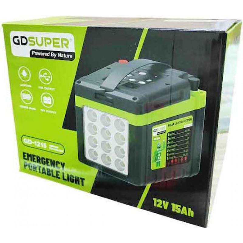 Ιδανικό για υπαίθριες δραστηριότητες όπως κάμπινγκ και ψάρεμα, το GDSUPER GD-1215 θα παρέχει φωτισμό και ενέργεια για τις συσκευές σας, ακόμα και στις πιο απομακρυσμένες τοποθεσίες.