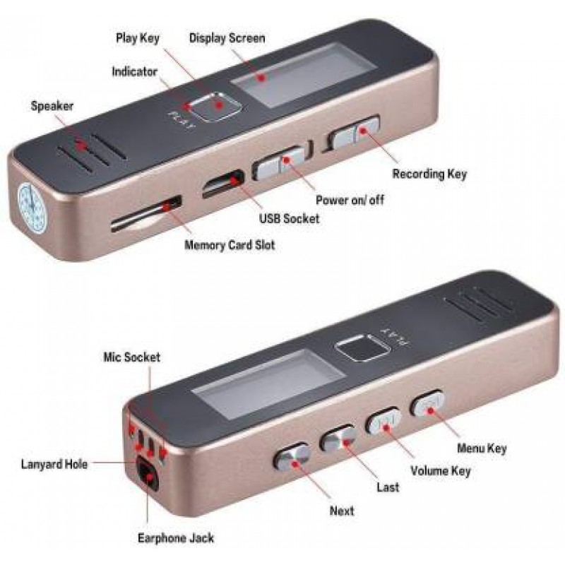 Ενσωματωμένα μικρόφωνα υψηλής ευαισθησίας, το εφέ εγγραφής είναι καθαρό, ρυθμός bit 192KBPS, μπορεί συνεχής εγγραφή για περισσότερο από 20 ώρες.