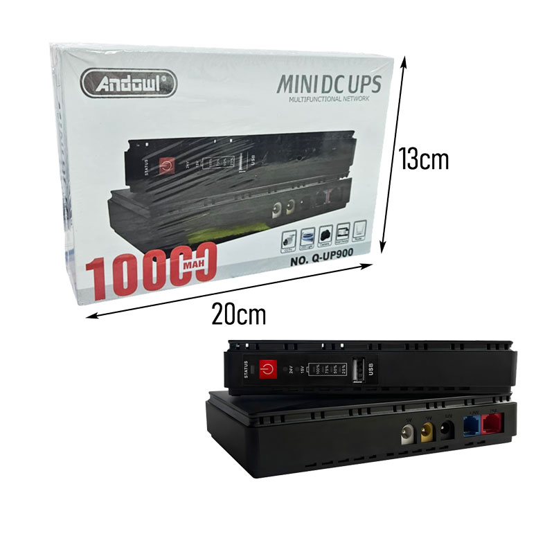Εξασφαλίστε αδιάλειπτη λειτουργία για τον εξοπλισμό του δικτύου σας με το Mini DC UPS Andowl Q-UP900. Αυτό το πολυλειτουργικό εφεδρικό τροφοδοτικό είναι σχεδιασμένο για να παρέχει συνεχή ισχύ σε συσκευές όπως routers, modems, IP κάμερες, συστήματα PoE και άλλες συσκευές DC, ειδικά κατά τη διάρκεια διακοπών ρεύματος.